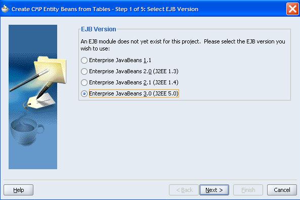 The wizard asks us which EJB version we are working with. Pick Enterprise Java Beans 3.0 (J2EE 5.0) (the default).