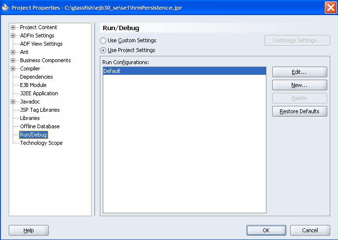 Our first challenge is to set up a new JDeveloper Workspace and Project for our EJB 3.0 Persistence application, using only the GlassFish libraries, no Oracle specific libraries. The steps are: