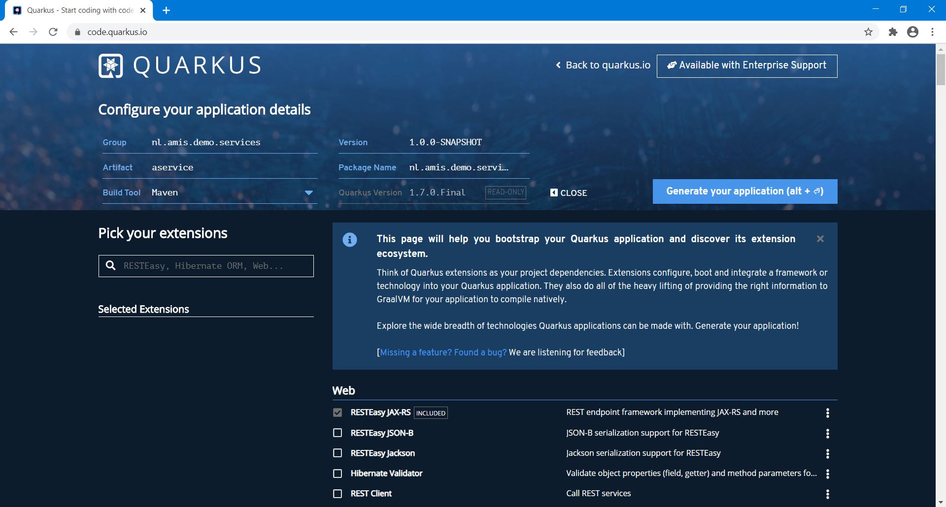 So, this is another way to create a Quarkus project instead of using the “bootstrap your Quarkus application” page.