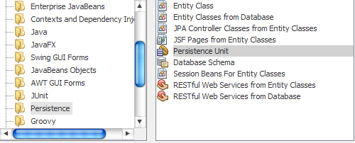 –  Choose New File and select Persistence Unit from the Persistence category. Click Next.
