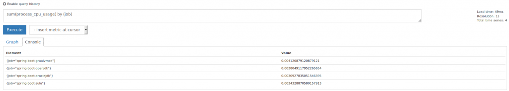 GraalVM allows code to be compiled to a native executable. I’ve not looked at performance of these native files but potentially this could make GraalVM a lot more interesting. Also it would be interesting to see how the Prometheus metrics would behave in a native executable since there is no real JVM anymore in this case.
