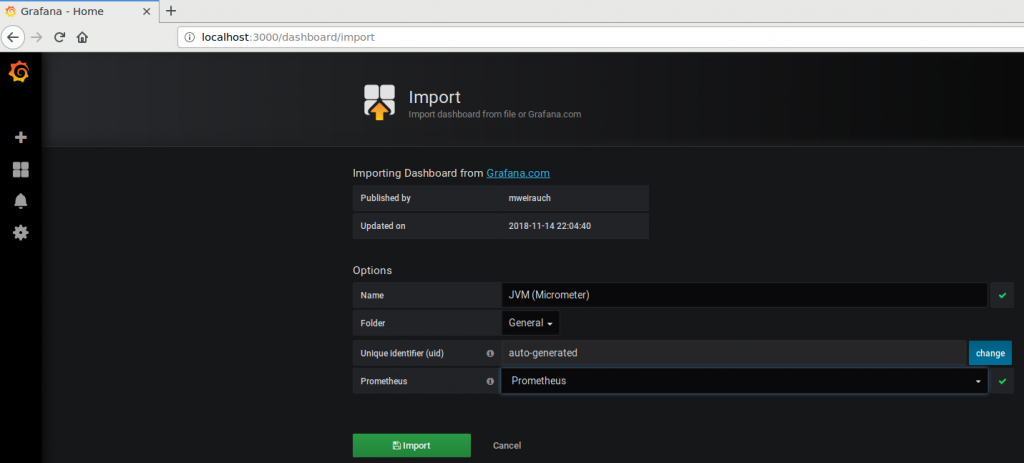 Next you need to import the dashboard in Grafana;