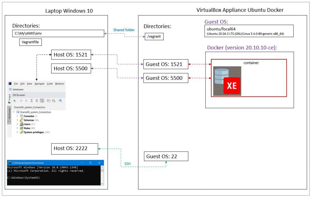 VS Code DevContainers allow us to easily configure and run a container with our development tech stack for the specific project or product we are working on – and have that fully integrated with our VS Code development environment. It does so leveraging Docker Desktop and WSL2. With just a few simple configuration steps, we can run the container from VS Code and work seamlessly with terminals that open in the container and exchange code changes back and from the container. This picture from the Code Visual Studio website visualizes the setup.