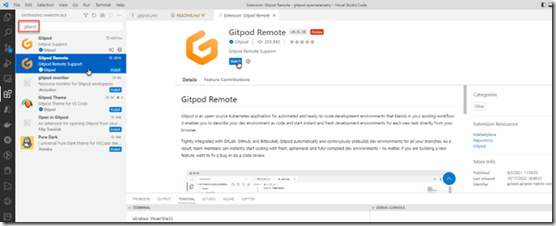Also install the VS Code extension Gitpod Remote