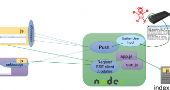 Node can push messages to browser clients, using WebSockets and the simpler Server Sent Events (SSE) mechanism. We will use the latter in this article – to push updates …