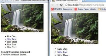 In a previous post – https://technology.amis.nl/blog/14949/push-based-synchronized-slideshow-web-application-implemented-using-websockets-and-jwebsocket-server-the-open-source-java-websocket-server – I discussed the implementation of the synchronized slideshow application using Web (HTML/JavaScript) clients and jWebSocket as websocket server. In an earlier article, …