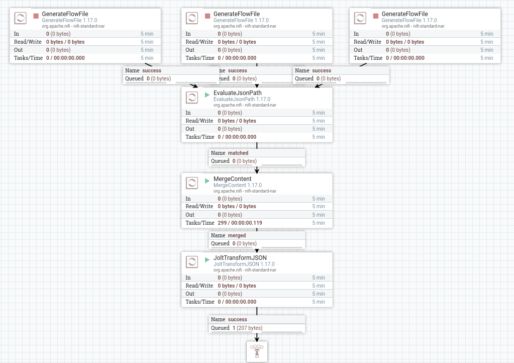 In this blog post I’ll illustrate how you can do this. The trick is to merge several messages using the MergeContent processor and then select the latest one using a Jolt transformation.