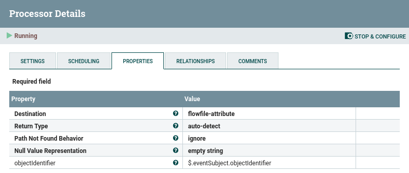 This processor puts the objectIdentifier from the flowfile in the objectIdentifier attribute.