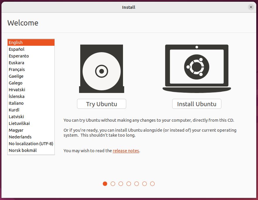 Ubuntu Desktop should now boot and display the installation menu.