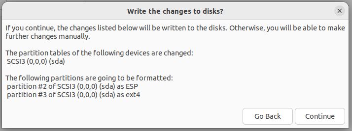 In the “Write the changes to disks?” pop-up window, I clicked on the ‘Continue’ button.