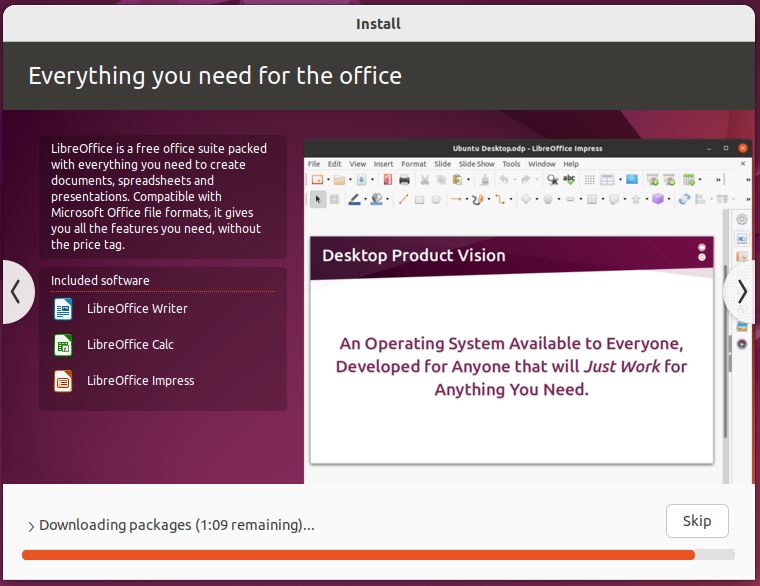 Continuing the installation of Ubuntu Desktop