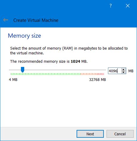 On the next screen, I selected the amount of RAM from my Windows laptop that the virtual machine will access, taking into account the recommended system requirements for Ubuntu Desktop.