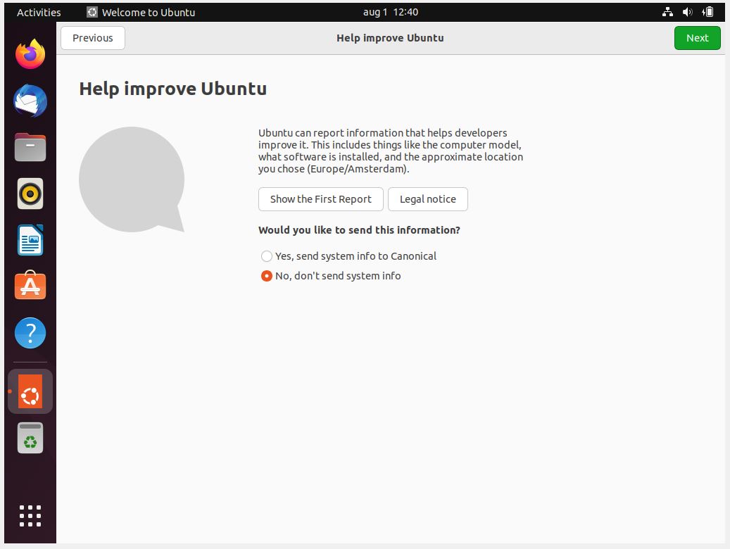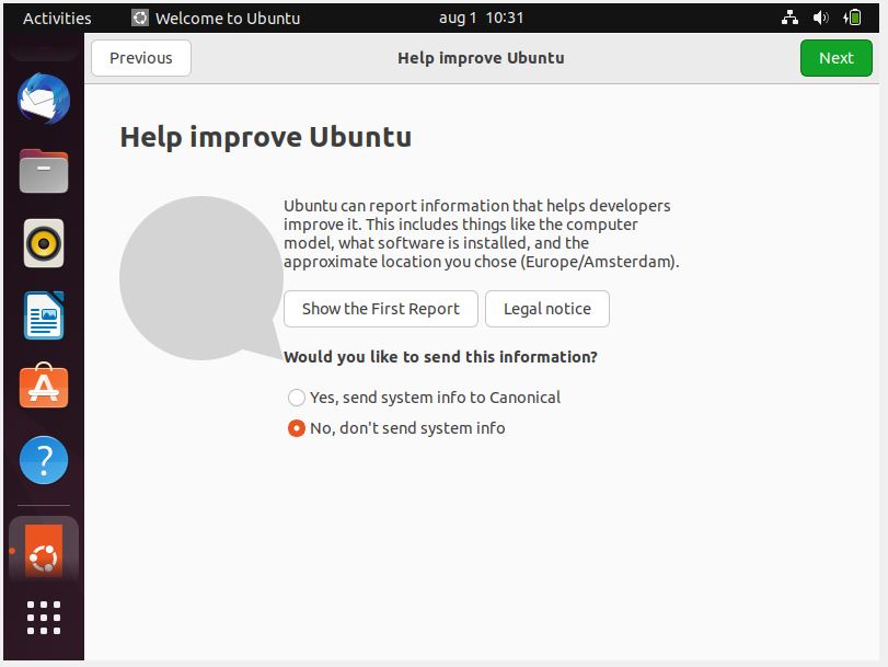 Here, I chose not to send system info.