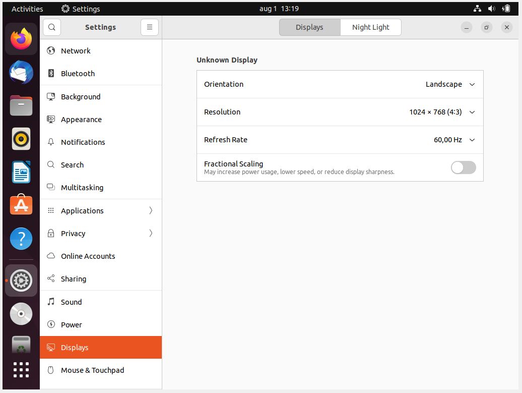 Because I was following the instructions “How to run Ubuntu Desktop on a virtual machine using VirtualBox”, the next step was to change the window resolution first.