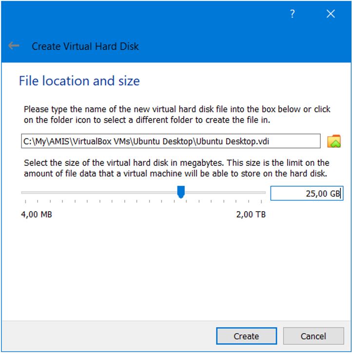 I selected 25 GB, taking into account the recommended system requirements for Ubuntu Desktop.