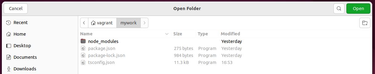 Then, I navigated (via Other Locations | Computer | home | vagrant | mywork) to the directory mywork: