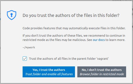 In the pop-up I checked the checkbox and clicked on ‘Yes, I trust the authors’.