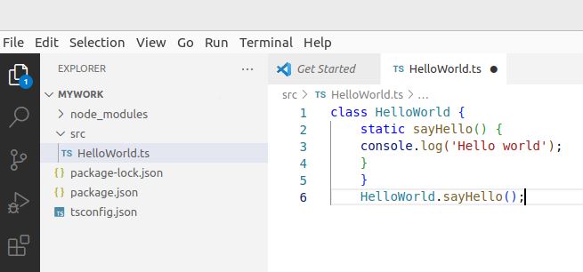 With a right click | new File , in the src folder, I created file HelloWorld.ts.