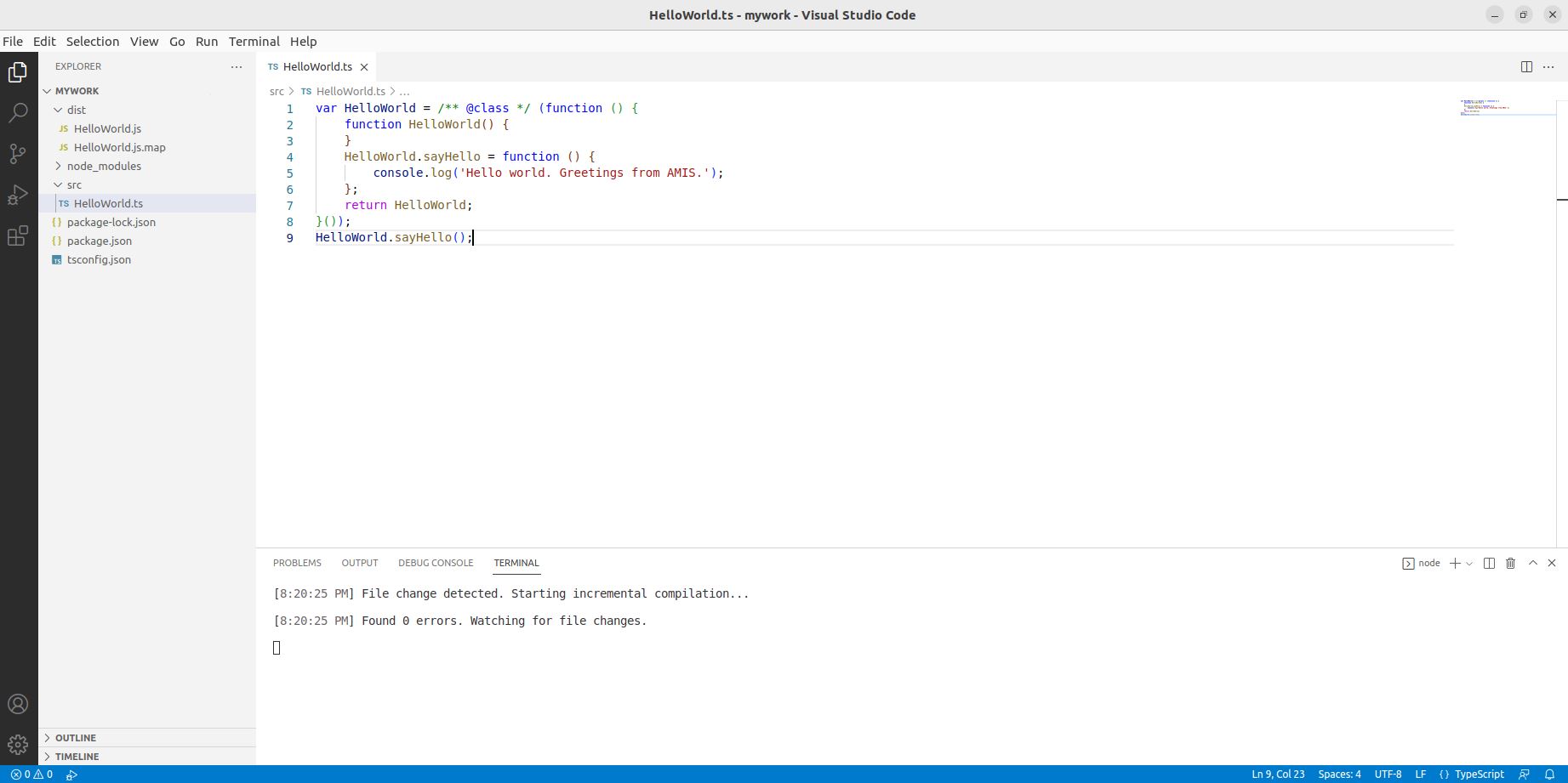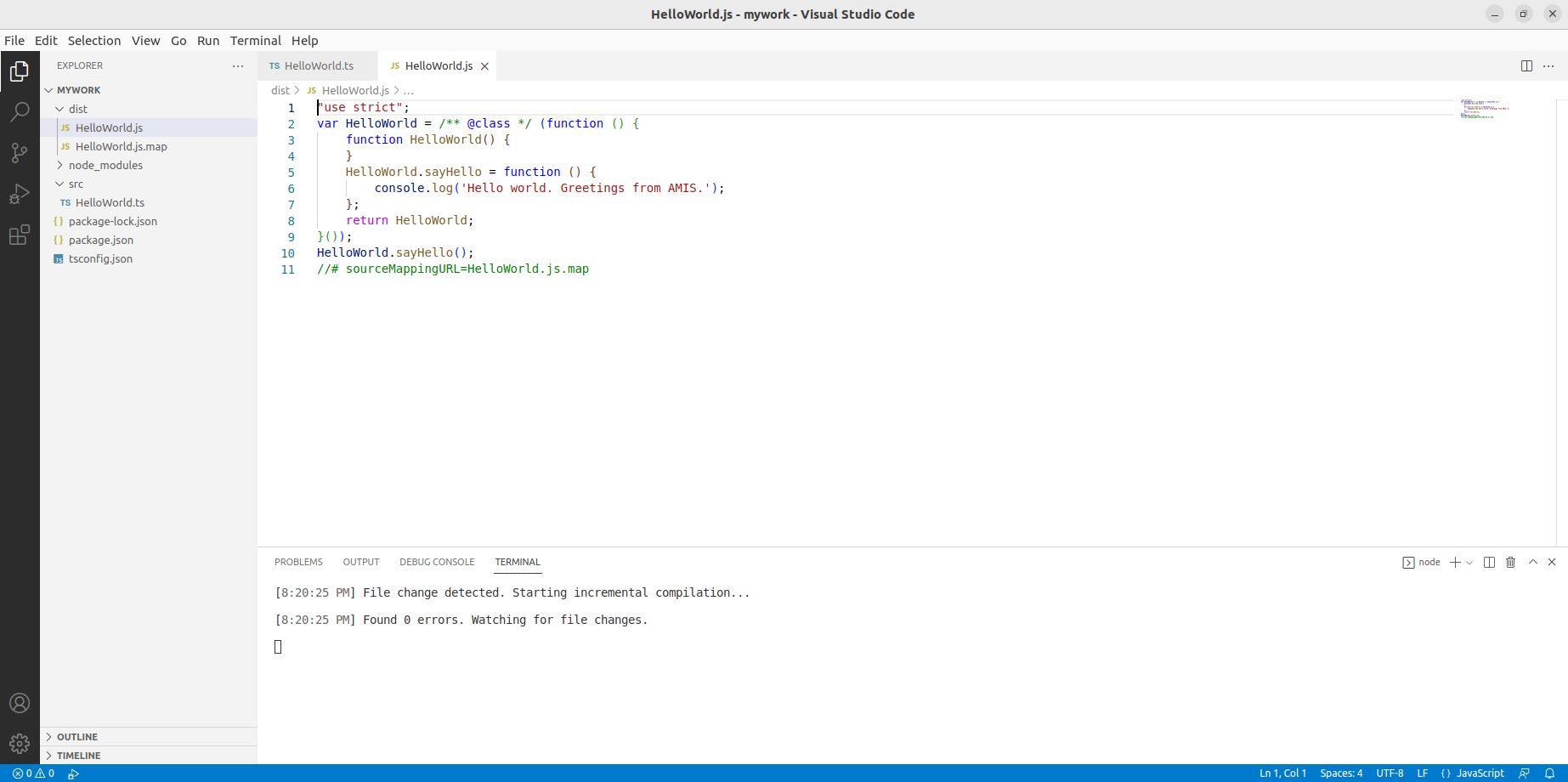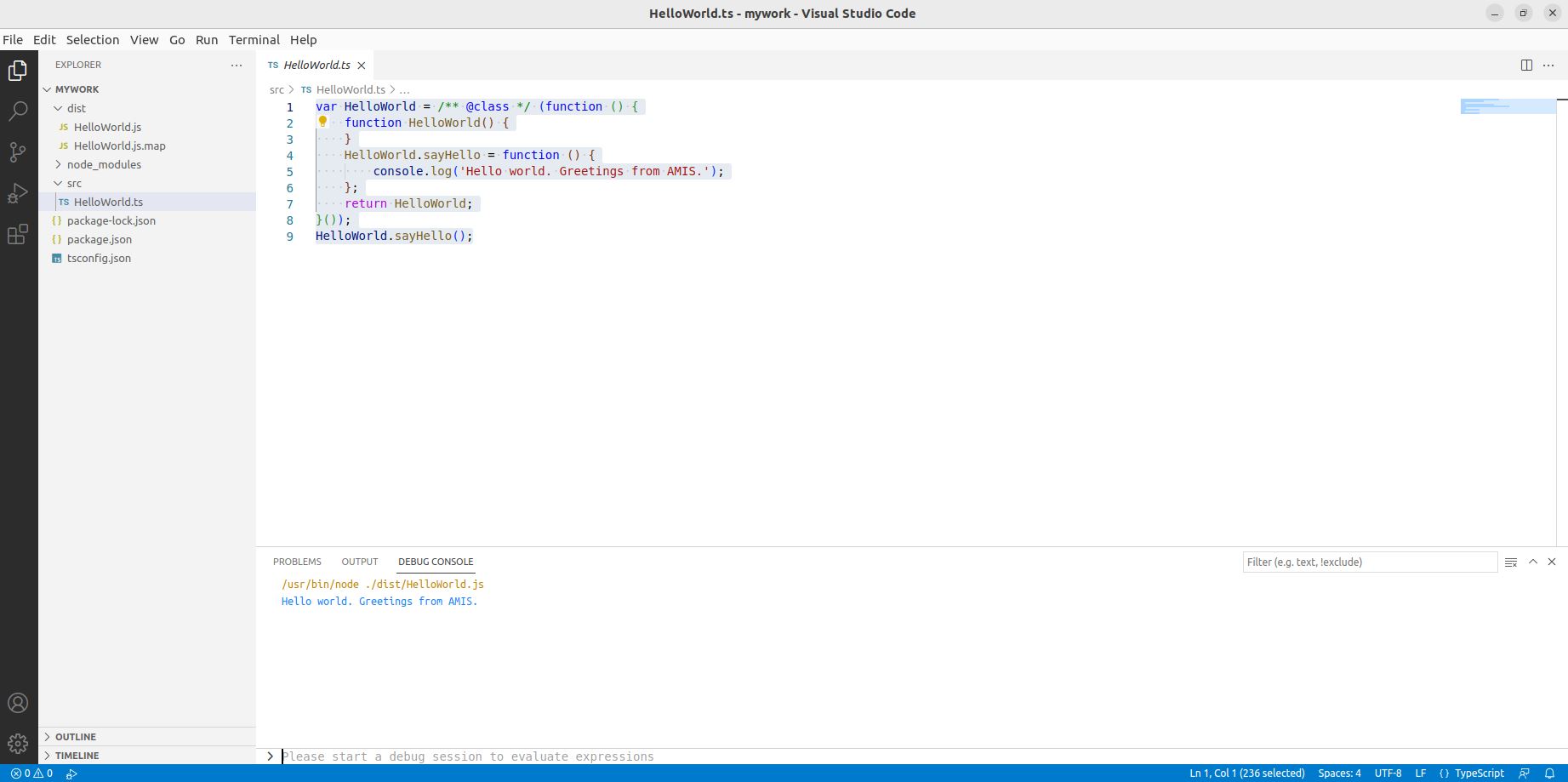 /usr/bin/node ./dist/HelloWorld.js Hello world. Greetings from AMIS.