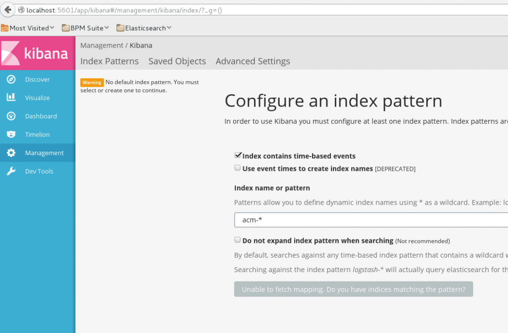 Now, point your browser to http://localhost:5601