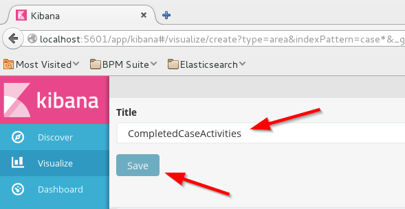 Save the visualization by clicking on Save in the upper right corner and giving it a name: